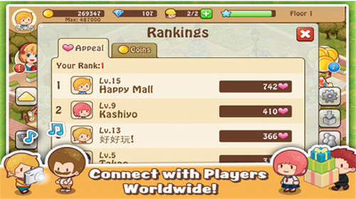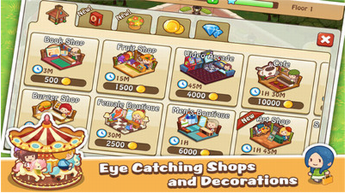 4、创意装修系统:提供300+风格各异的装饰组件,支持全景视角自由搭建,打造独具特色的商业地标。