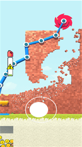 长按屏幕激活蓄力模式,精准打击建筑弱点可触发连锁坍塌。注意观察墙体颜色变化,红色区域代表最佳打击点位。合理分配燃料储备是挑战高难度关卡的关键。