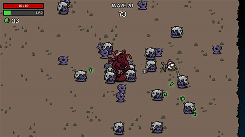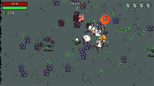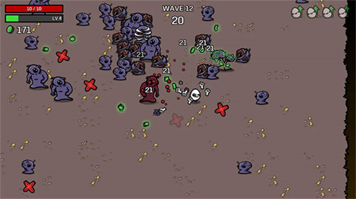 游戏内独创的豆荚收集机制要求玩家在战斗走位与资源获取间保持平衡,未被及时拾取的绿色经验豆将在下波战斗中以双倍形式存储。建议前中期优先提升护甲值与攻击速度,第10波后重点强化生命窃取与范围伤害,以应对后期密集的弹幕攻势。