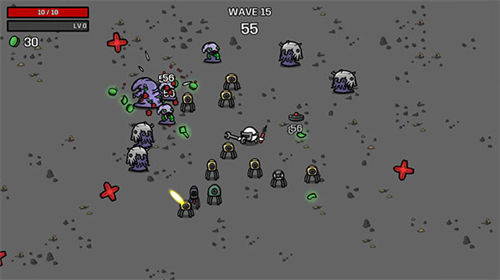游戏采用竖屏双摇杆操作设计,左侧控制角色移动,右侧实现武器切换与精准射击。独创的六武器轮盘系统打破传统战斗模式,玩家可同时携带法杖、霰弹枪、电击枪等差异化装备,通过武器合成机制提升装备品质。每波战斗后开放的属性强化界面,提供超过20种成长方向选择,构筑出独属的流派体系。