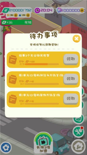 每日巡查公寓收取租金,完成经营目标获取特殊奖励;