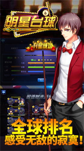 明星台球是一款专为台球爱好者打造的高品质2D竞技手游,通过精密物理引擎实现真实击球手感。游戏中完整呈现8球规则与斯诺克玩法,支持全球玩家实时对战或单人训练模式,指尖轻划即可完成精准走位与击球操作,让每位用户都能感受到身临其境的台球对决乐趣。