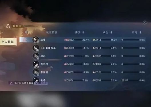 5. 切换至团队视角后,不仅能查阅输出排行,还能观测治疗量、承伤值等辅助数据