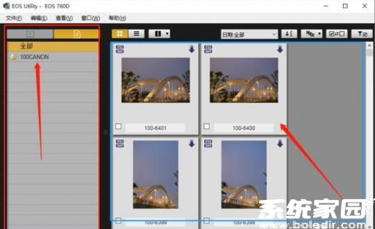 3、EOS Utility主界面将自动划分为双视图工作区。左侧资源管理器模块以树状结构展示相机存储卡内的文件夹层级,支持展开/折叠查看详细目录;右侧预览窗口则以缩略图矩阵呈现当前选定文件夹内的所有图像文件,并提供EXIF信息悬浮显示功能。