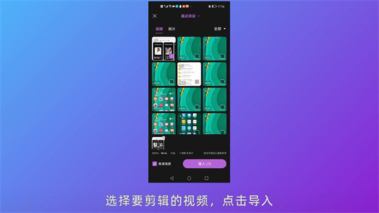 素材管理界面支持多格式视频文件导入,长按缩略图可预览内容。勾选目标素材后,右下角「导入」按钮会显示已选文件数量。建议优先整理拍摄素材,建立专用文件夹进行分类管理。